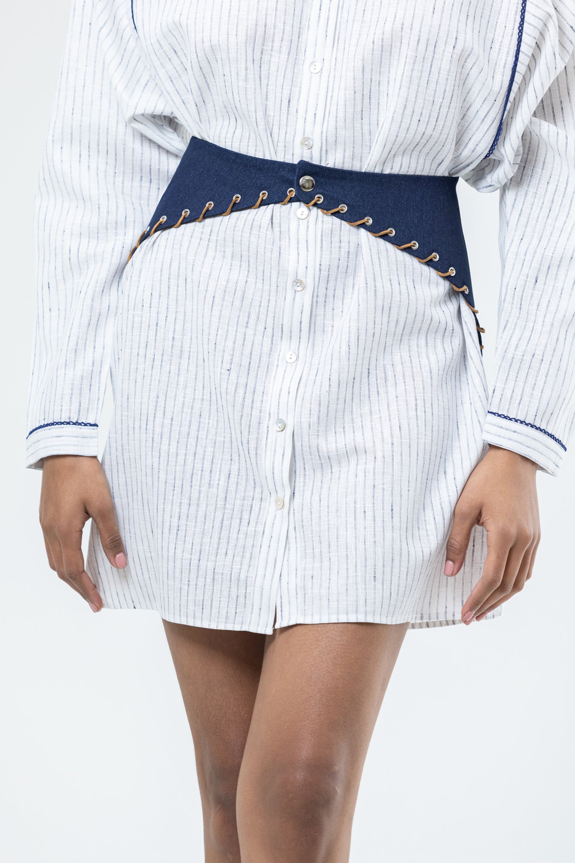- Jean: 100% Algodón de mezclilla Jean azul y cuero vero