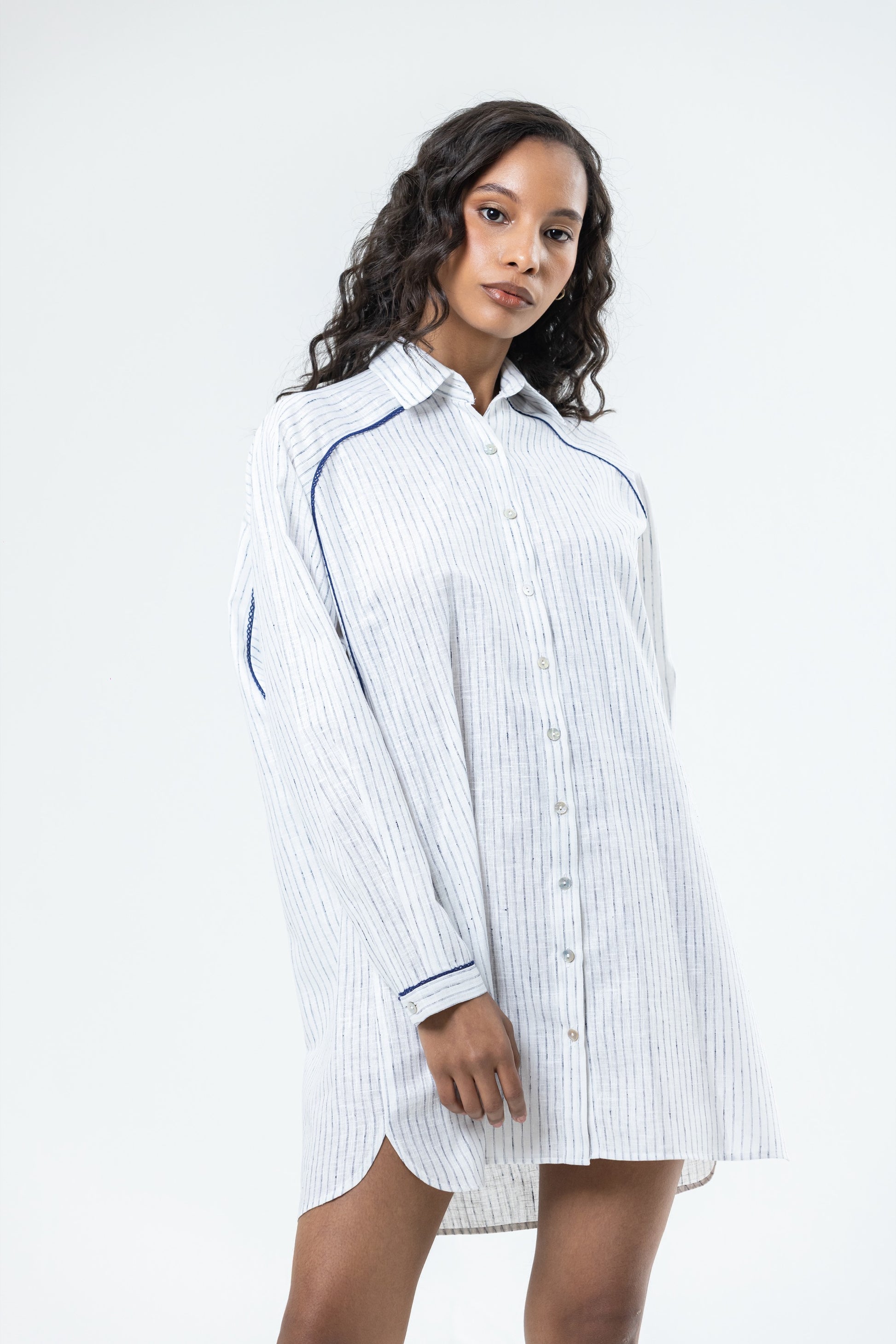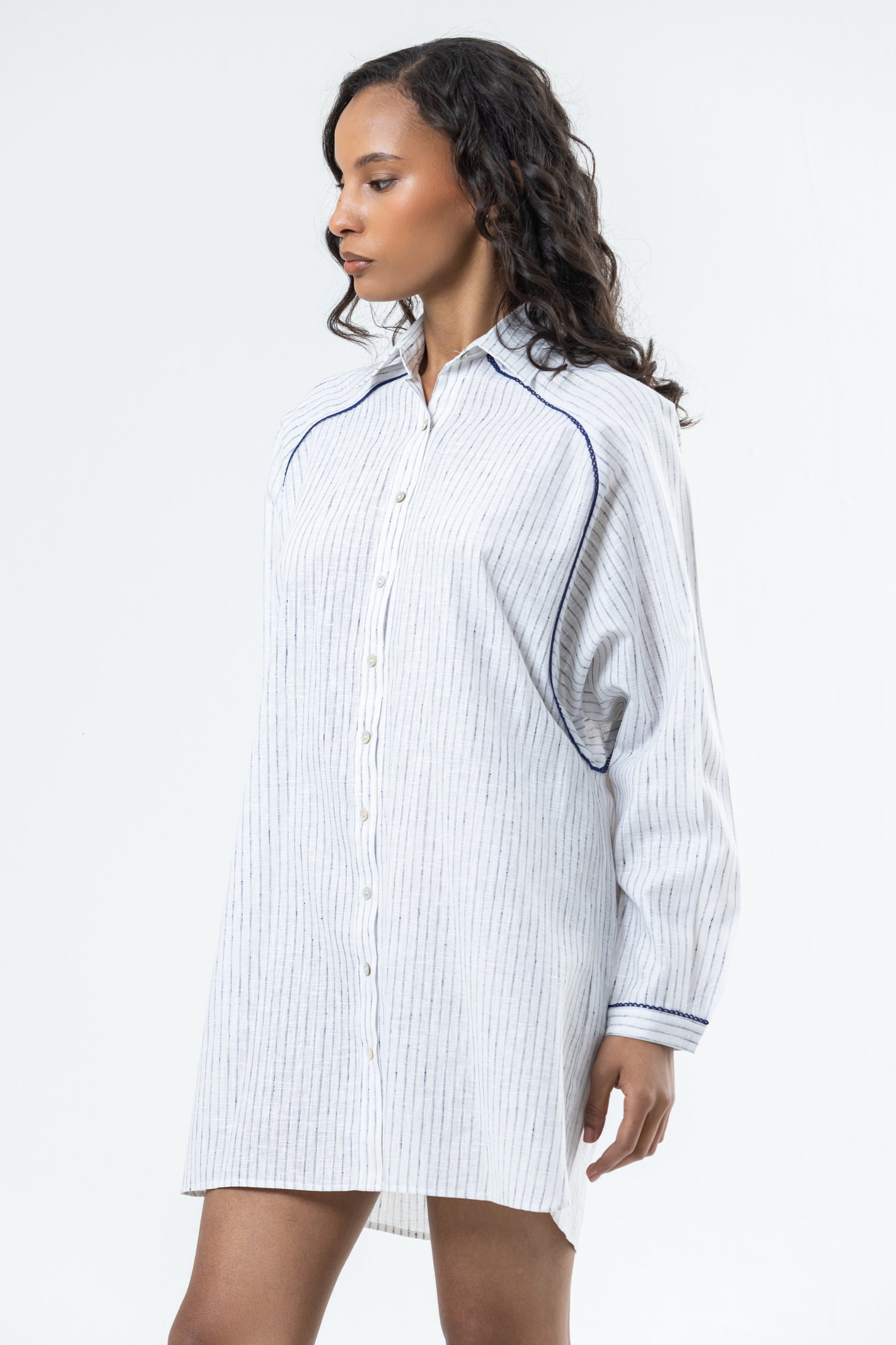 Blusón / Minivestido detalles de stich de pelota en rojo bordados a mano.